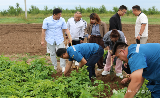 调研人员还亲自体验了马铃薯的采挖,深刻体会到了农业产业的艰辛和乐趣,对弘基农业长期致力于推动现代农业科技应用,坚持高效、生态、绿色发展,积极履行社会责任、助力乡村振兴等方面的努力和成绩给予了高度认可。