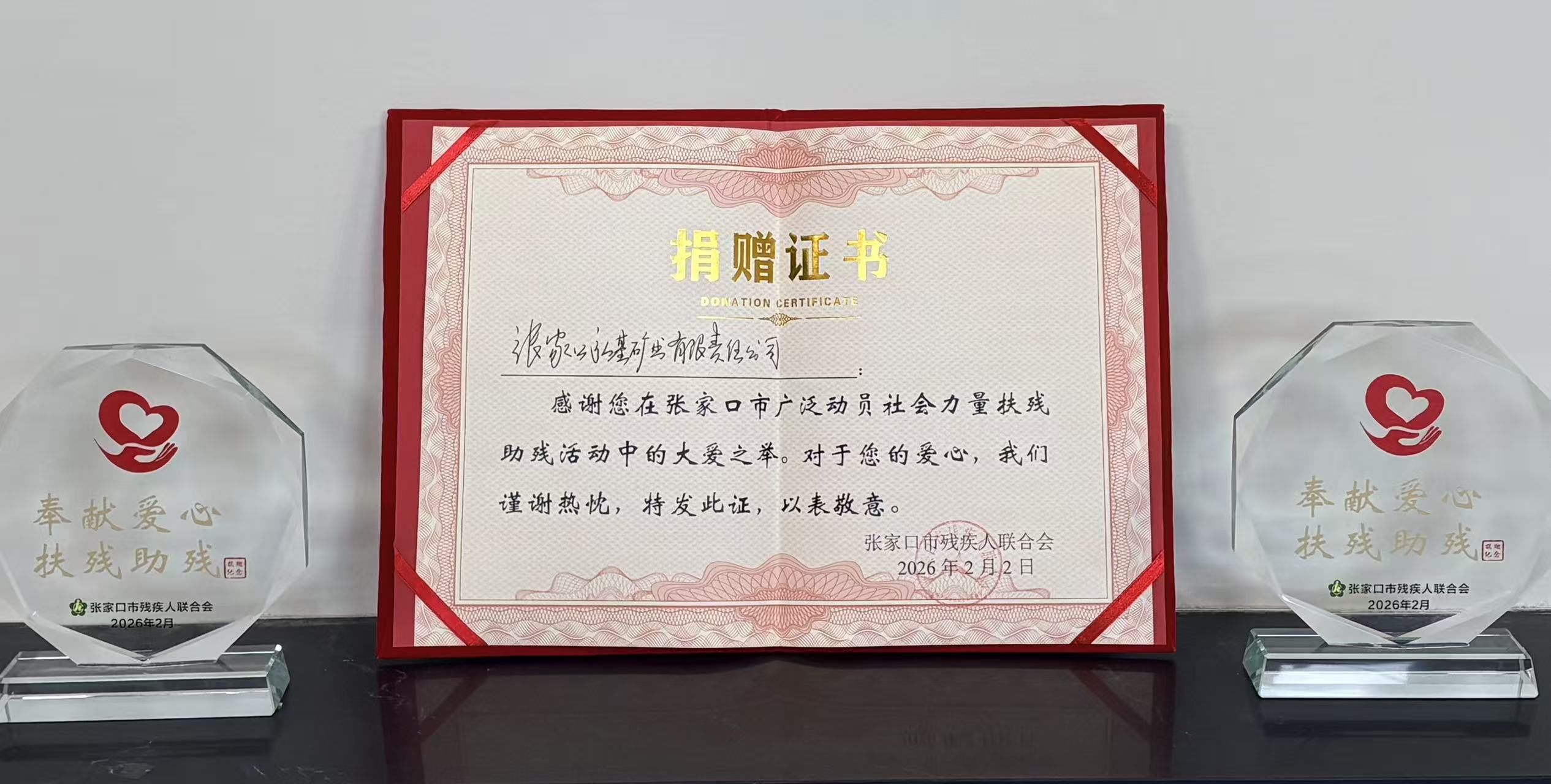 2026年2月2日上午,张家口市广泛动员社会力量扶残助残活动启动仪式在市残联隆重举行。张家口弘基矿业有限责任公司作为爱心企业代表受邀出席、现场捐赠,积极投身“爱心河北 助残暖冬”行动,以实际行动践行社会责任,为扶残助残事业注入弘基力量。
